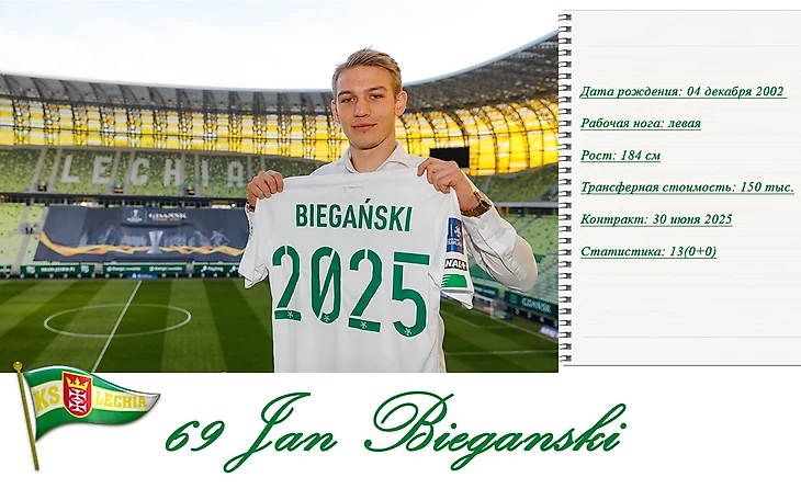 Потеряв одного таланта (если до трансфера Урбанского дойдет), гданьчане смогут похвастаться еще одним талантливым польским полузащитником. Осенью контракт с «бело-зелеными» подписал Ян Бегански, воспитанник «ГКС» Тыхы. Полузащитник дебютировал в основном составе тышан в возрасте 15 лет 5 месяцев и 10 дней.