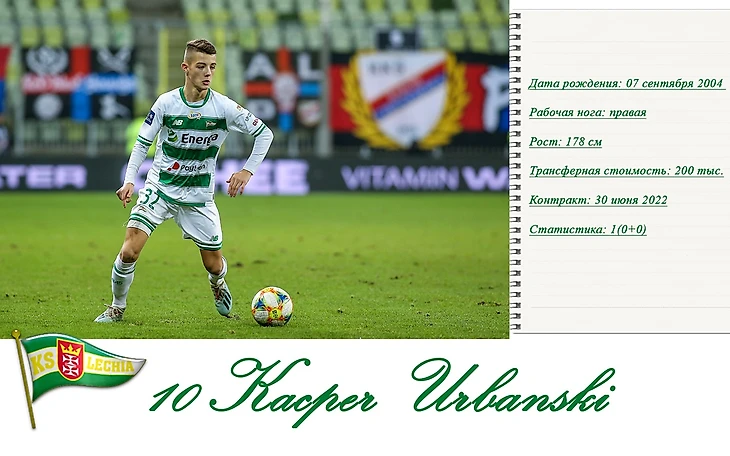 Каспер Урбански - сын бывшего полузащитника гданьчан Пшемыслава Урбанского. А еще Каспер - рекордсмен Экстракласы, именно полузащитник «Лехии» является самым молодым футболистом, выходившим на матч Экстракласы в стартовом составе. Дебютировал Каспер в составе «бело-зеленых» 21 декабря 2019-го года, а уже 14-го февраля 2020-го года вышел с первых минут в победном матче против «Пяста».