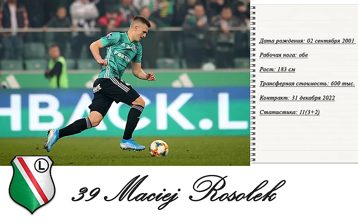 Росолеку 19 лет, он уже успел дебютировать в Экстракласе и забить первые голы. Но нынешний сезон у Мацея пока что не выходит. Аренда в перволиговую «Арку», которая ведет борьбу за возвращение в элиту польского футбола, выглядит логичной. В ходе подготовки к возобновлению сезона Росолек наигрывался на позиции нападающего в формации 3-5-2. Для Росолека «Арка» выглядит хорошим вариантом, чтобы после дебютного сезона на взрослом уровне провести еще один крепкий год перед последним годом действия контракта с варшавянами.