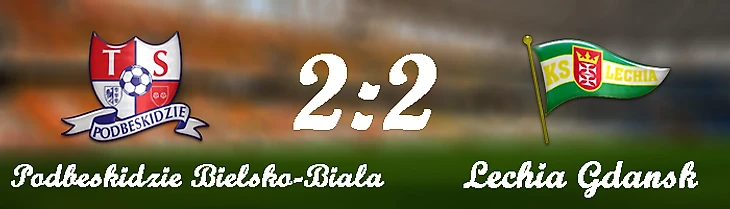 Гданьчане активно начали матч, особо активен был Лукаш Зволински. Еще недавно ходили слухи о его возможном переходе в «Легию», а сейчас, восстановившись от травмы, Зволински стал главным оружием «бело-зеленых». Но переиграть Песковича форварду не удалось ни в одной из попыток. На 29-ой минуте «Подбескидзе» ответило своим моментом. Подача со штрафного нашла в штрафной руку Петшака. Арбитр заметил нарушение и назначил пенальти. К точке подошел Рундич и мощно пробил по центру ворот - Куцьяк прыгнул наугад в один из углов и мог только взглядом провожать мяч. Начав с центра поля, гданьчане чуть было не пропустили второй мяч. Неточная передача на своей половине поля быстро превратилась в атаку хозяев. Украинец Мякушко мощно пробил из-за штрафной, но Куцьяк справился с угрозой. На 36-ой минуте до прострела с левого фланга не дотянулись ни Пайшау, ни Зволински. На 44-ой минуте «Подбексидзе» получил право на очередной стандарт. Угловой закончился неудачно, гости убежали в контратаку два в один, но Кубицки не воспользовался передачей Паушау - снова на высоте был Пескович. На добивание первым успел Конрадо, догнавший партнёров по команде, и сравнял цифры на табло в концовке тайма. На перерыв команды ушли при счете 1:1, гости выглядели чуть интереснее, но Зволинского подвела реализация.