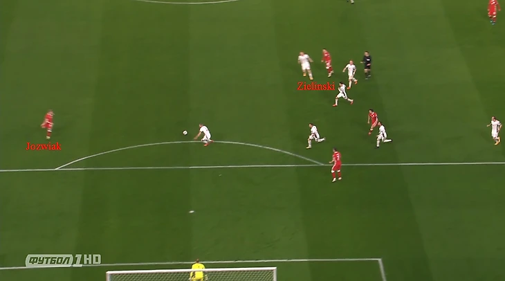 С ним рядом находится Берешиньски, а Адама Салаи опережает Хелик, если вдруг мяч полетит в его сторону. Берешиньски со своей задачей справился, он не позволил Салаи нормально пробить, заблокировав удар форварда «Фрайбурга», но мяч отлетел к Салаи, у которого Хелик уже был за спиной. Адаму нужно было просто пробить мимо Щенсного, что ему удалось сделать. 2-0 к 52-ой минуте при ужасной игре поляков, в обороне тройка Берешиньски-Хелик-Беднарек ошибалась раз за разом, а в атаке мяч не доходил до Левандовского с Миликом.