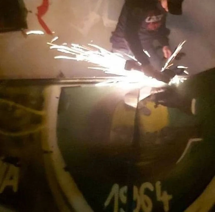 На днях фанаты «Руха» пошли еще дальше, они в буквальном смысле вырезали граффити своих врагов на одном из заброшенных зданий в Катовице.