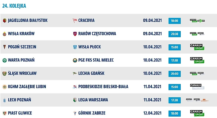 После международной паузы вернулся клубный футбол, в воскресенье в Польше праздновали пасху, поэтому 23-ый тур был непривычно разыгран за два дня: субботу и понедельник. Но вернулись не все клубы, из-за коронавируса в составе «Ракува» был перенесен матч между ченьстоховцами и «Сталью».