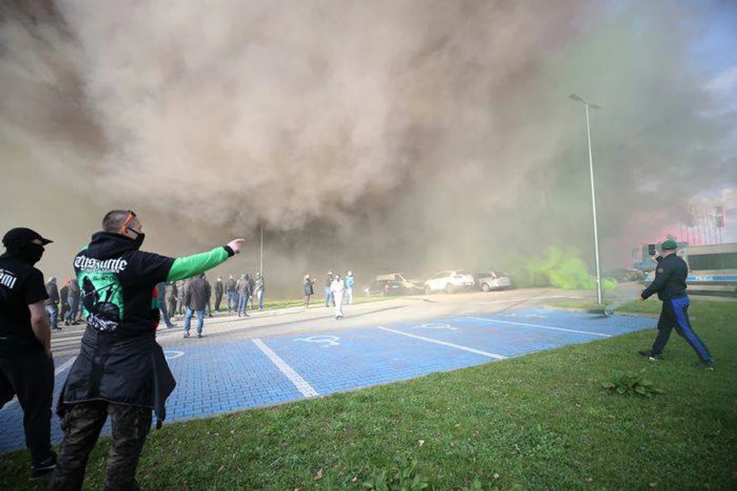 Как уже писал выше, болельщики не оставили свой клуб в одиночестве в его день рождения. Фанаты тышан собрались под стадионом, откуда громко поддерживали команду и жгли пиротехнику. Празднование юбилея омрачила полиция, попытавшаяся помешать болельщикам. Фанаты в ответ на это часть пиротехники отправили в сторону полиции.