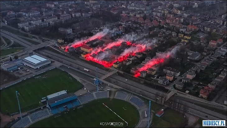 Не обошлось без празднований и в Катовице - городе врагов «Руха». Часто здесь происходят локальные стычки между фанатами местного «ГКСа» и «синими». Празднованию 101-ой годовщины образования «Руха» не помешал никто.