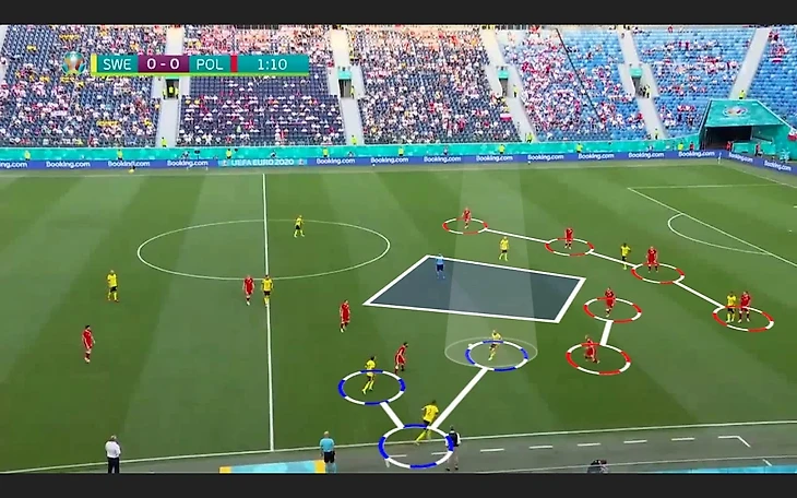 В прошлом матче тренерский штаб Соузы явно поговорил с Пухачем, обратив внимание на его неудачные попытки подключений к атакам, которые приводили лишь к потерям мяча. В среду Соуза вновь не был доволен Пухачем в первом тайме, на этот раз Пухач на вторые 45 минут даже не вышел. Его заменил Пшемыслав Франковски, который неожиданно на Евро стал для Соузы чуть ли не первым игроком, выходящим с лавки. Франковски - атакующий полузащитник, но с учетом оборонительного правого фланга шведов это не казалось серьезной проблемой. Непривычно было видеть Франковского и на левом фланге, куда чаще Пшемыслав играл на правом фланге полузащиты.