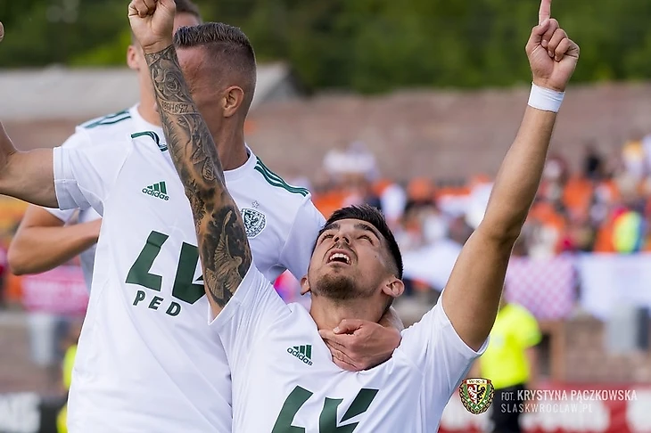 Яцек Магера принял решение отойти от привычной для него схемы с тремя центральными защитниками, перейдя на 4-4-2. Левый фланг выглядел очень оборонительным, на нём играли Штиглец и Гарсия (оба являются номинальными левыми защитниками). Впереди вышла пара Эспозито и Пясецки, а на правом фланге вышел Роберт Пих, который не лучшим образом провёл последние полгода во Вроцлаве.