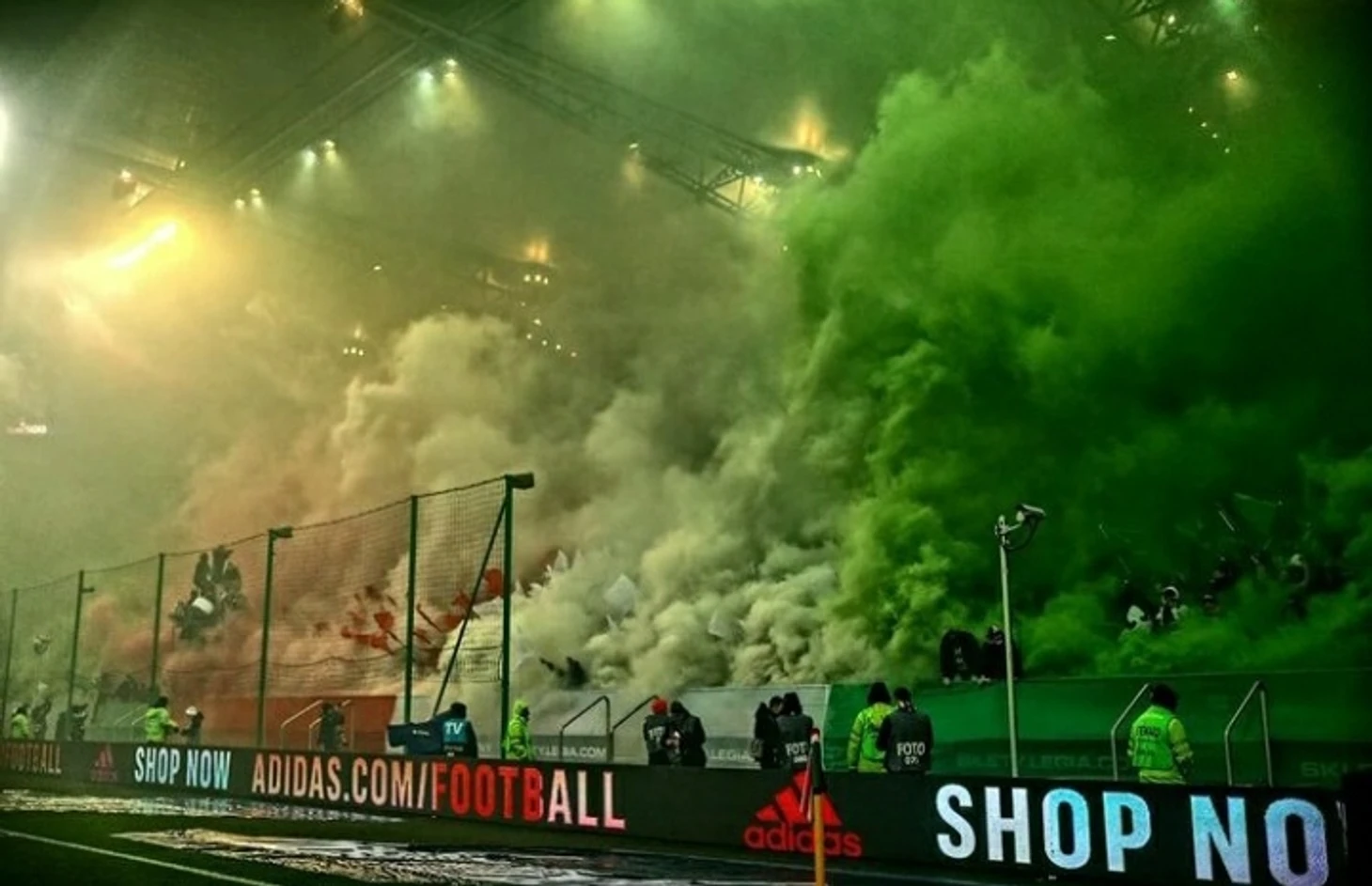 Варшавяне тоже не обошлись без пирошоу, сделав это еще до старта матча.