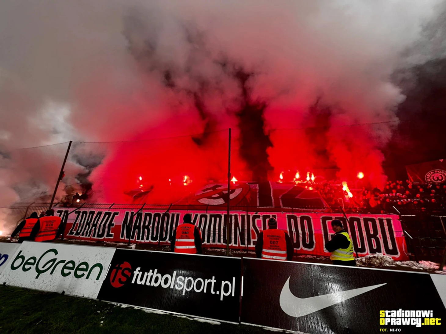 В Лодзи в рамках кубка Польши встречались друзья по коалиции WRWE «Видзев» и «Висла». И хозяева, и гости отметились оправами с пиротехникой. Лодзинцы подготовили секторувку в стиле логотипа компании Nike, а также баннер "Если вас интересует, наше мнение".