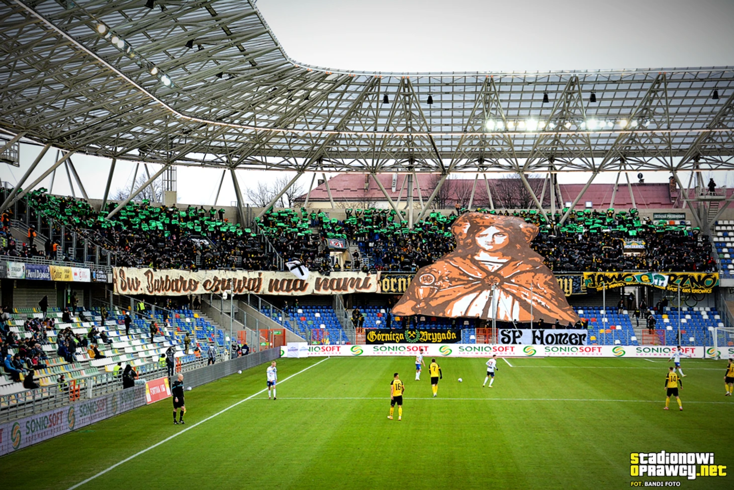 Фанаты катовицкого «ГКС» в большом количестве отправились на близкий выезд в Бельско-Бялу на матч с «Подбескидзе» 4-го декабря. В этот день в Польше отмечался день шахтера. Этому и была приурочена оправа катовичан "Святая Барбара, оберегай нас". Дело в том, что святая Барбара считается в Польше покровительницей шахтеров.