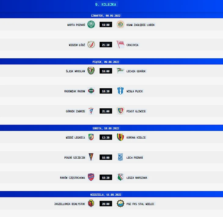 После неудачного старта познаньский «Лех» постепенно выбирается из кризиса и приближается к лидирующей тройке, в которую спустя год вернулась «Легия», одержавшая четвертую победу в пяти последних матчах, а вот «Ракув» традиционно уступил «Краковии».
