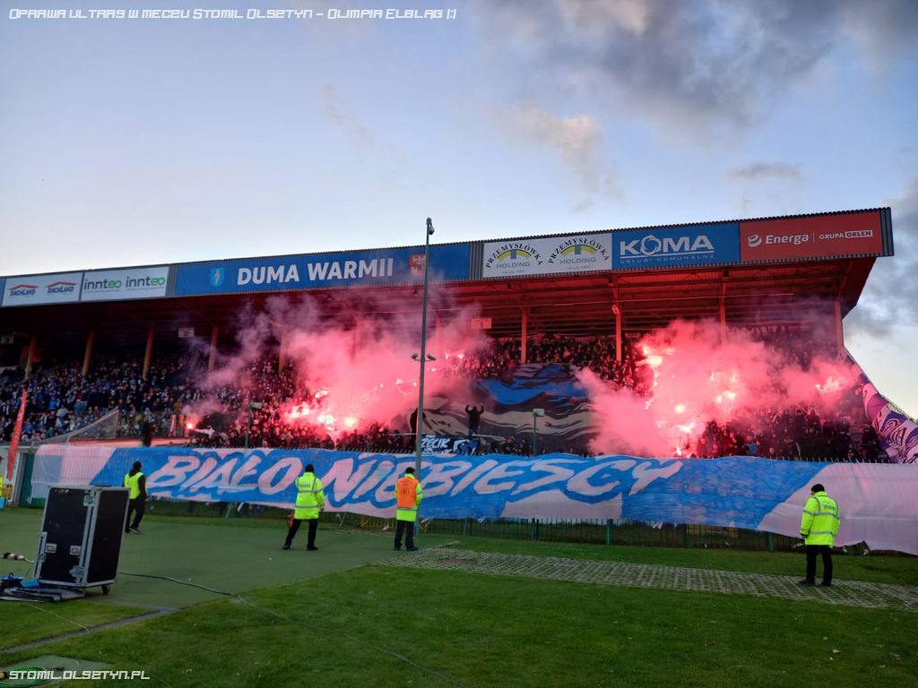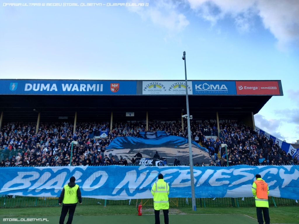 В Ольштыне 8-го октября прошло дерби между «Стомилем» и «Олимпией» из Эльблонга. Хозяева подготовили к матчу оправу ''Бело-синие''.