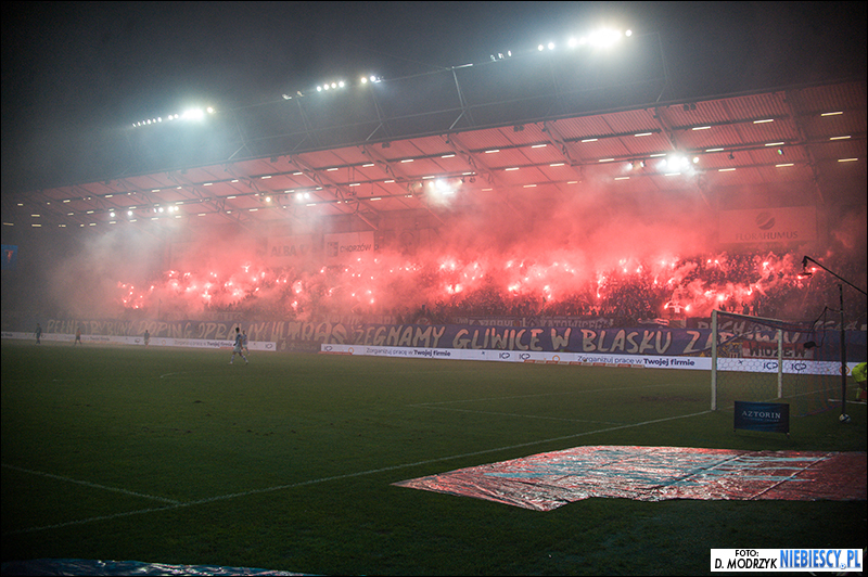 Пирошоу фанатов катовицкого «ГКС» на матче с «Гурником» из Ленчны.