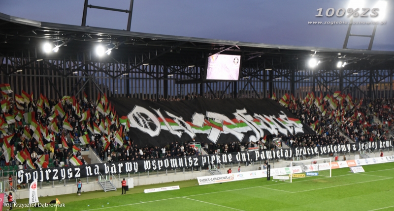В I-ой лиге в Сосновце прошел матч между местным «Заглембе» и столичной «Полонией». Пикантности матчу добавляло то, что друзьями сосновчан являются фанаты «Легии», главные враги «полонистов». Фанаты «Заглембе» продемонстрировали оправу ''Посмотришь на эти цвета и вспомнишь прекрасные дни. Помни, что мы из одной крови''.