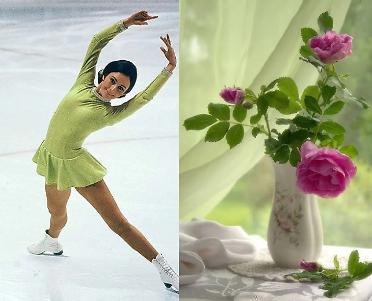 В дни рождения дарят цветы. В данном посте представлены цветочные коллажи с фигуристами.