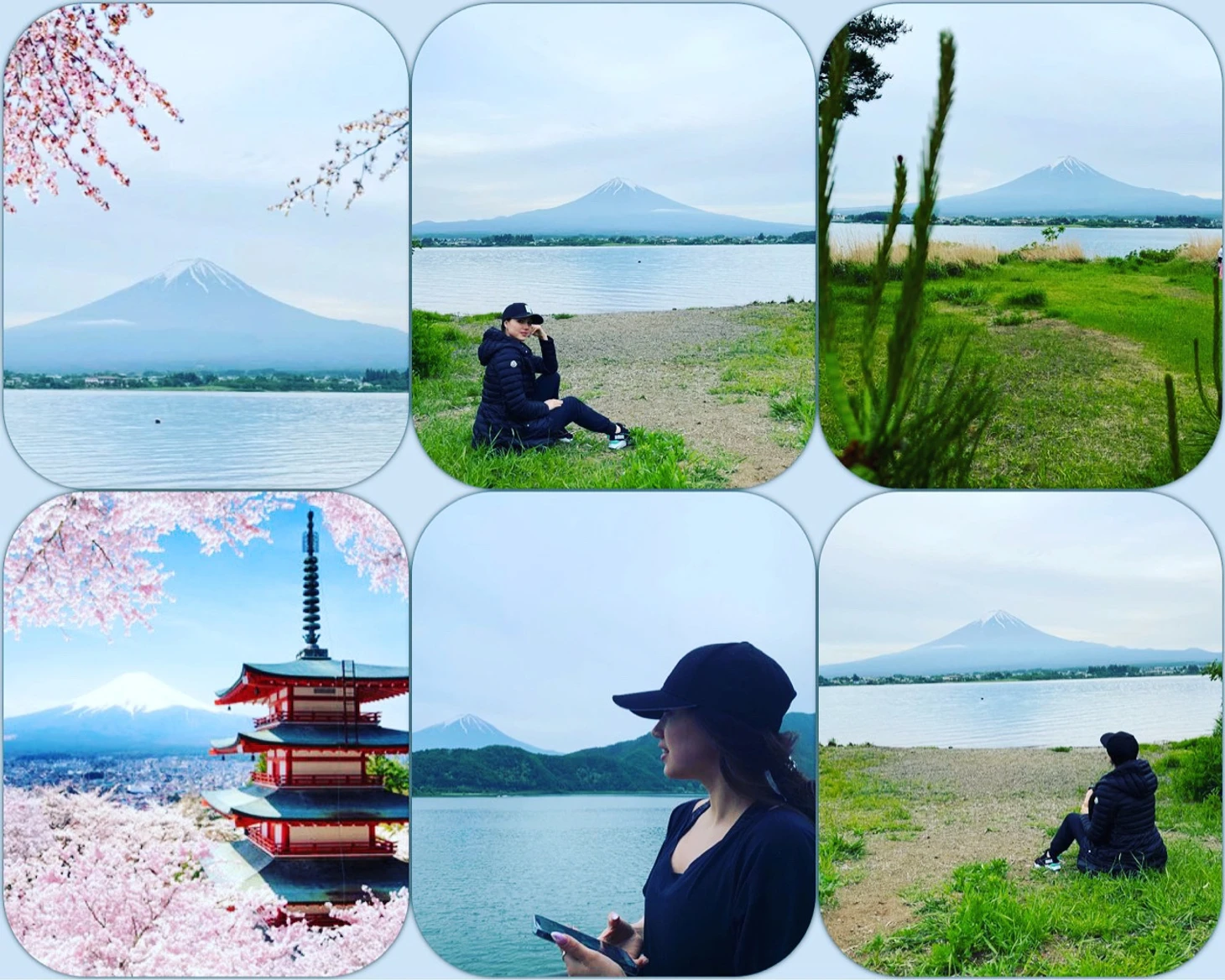 Свободное время Алина проводила в интересных местах страны восходящего солнца и пару прекрасных фотографий неподалёку от Fujisan были размещены в ее инстаграме. Две фотографии с слева это не личные фото Алины, а найдены мною, но это также гора Фудзи только раней весной.