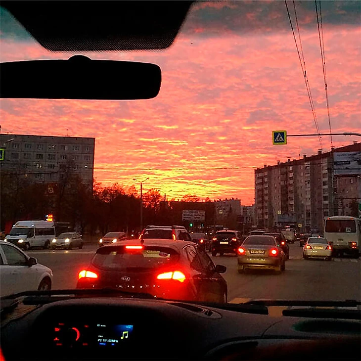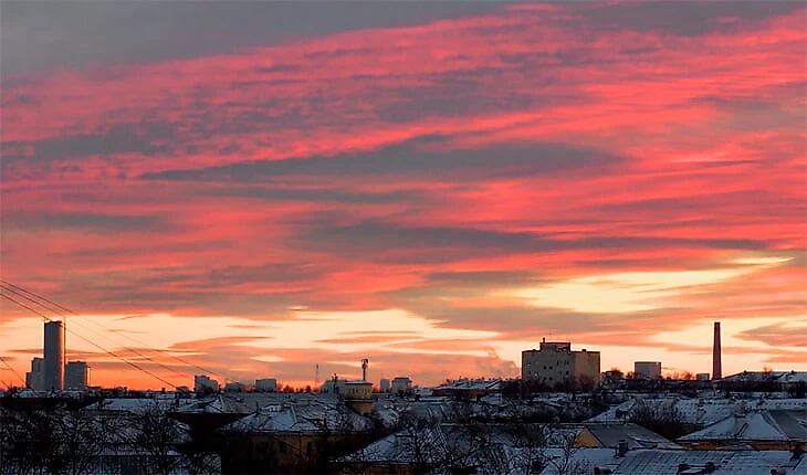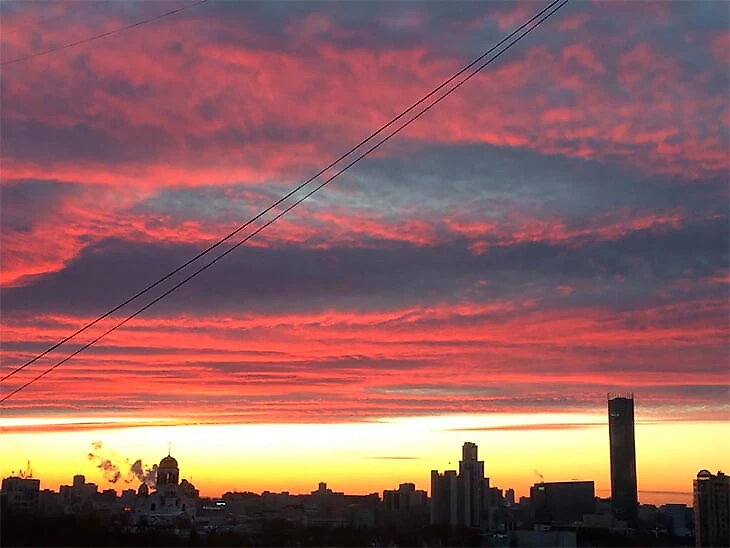 Красочное небо в России. Закат в Екатеринбурге 14 декабря 2019-го.