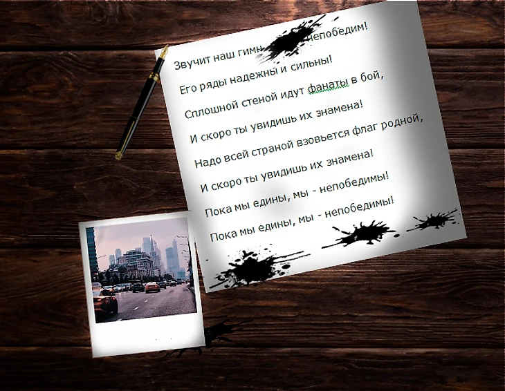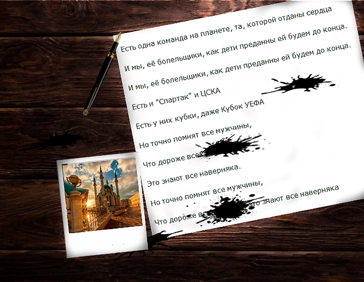 Продолжаем ждать возвращение российского футбола. В этом материале не будет теста, здесь будет написан гимн клубов неаккуратным писателем, который случайно капнул чернилами на ключевые слова текста. Ваша задача узнать чья это песня. Сложность добавляет то, что здесь не только официальные гимны клубов.