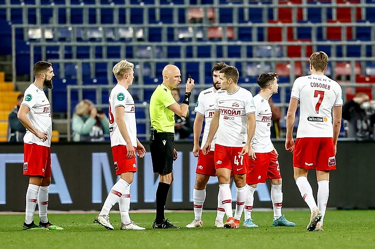 В первые 20 минут судья смотрел var на просмотр красной карточки, дал жёлтую карточку с оранжевым оттенком Соболеву, спасение Денисова и, конечно, первый гол Чалова в ворота «Спартака». Подробнее о каждом эпизоде. Меня бесит, что не соблюдается протокол var, примерно так же, как судья Иванов. И как же здорово, что оба этих раздражающих факторов были на матче.