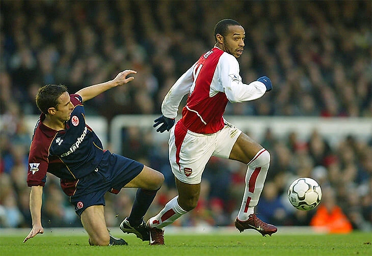 Если разбираться, почему Анри не был настолько грозным, то, наверное, все-таки нужно будет обратиться к теме того, что «Арсенал» на самом деле играл очень часто вничью в тот год. «Арсенал» постепенно начал осознавать, что у них есть шанс добыть это историческое достижение, и в некоторых матчах немножко себя ограничивал, то есть не играл в атаку так мощно, как он мог бы играть.