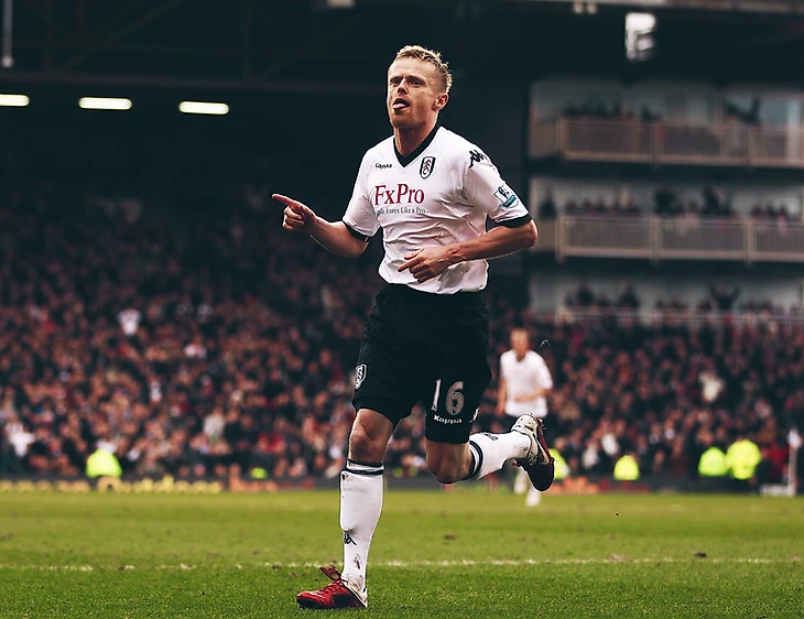 Валлийский герой "Крейвен Коттедж", который своими голами в полуфинале и финале Лиги Европы практически привез трофей в Лондон в том самом сезоне. Удивительно то, что за тот год он вышел в 33-х матчах и отличился трижды, а всего за "дачников", в период с 2007 по 2013 гг. отыграл 168 игр, забил 17 голов и раздал 26 ассистов. Сопоставимо с его этапом в "Тоттене" с 1999 по 2005, когда Саймон надевал футболку клуба 137 раз, наколотил 16 мячей и ограничился одним ассистом. За сборную бодрые 58 выходов на поле и 6 записей на табло стадионов.