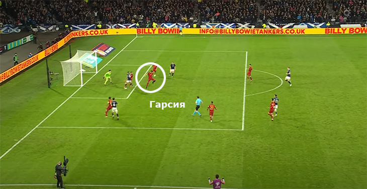 Давид – интересный защитник, как раз физически мощный и фактически двуногий. В системе «Осасуны» он играет чуть левее, выбрасывается на соперника. Тренер Хагоба Аррасате любит прессинг, так что Гарсия неплохо знаком с такой игрой. По многим метрикам Давид – один из лучших центрдефов в Ла Лиге. Но именно его зону шотландцы разрывали чаще всего.