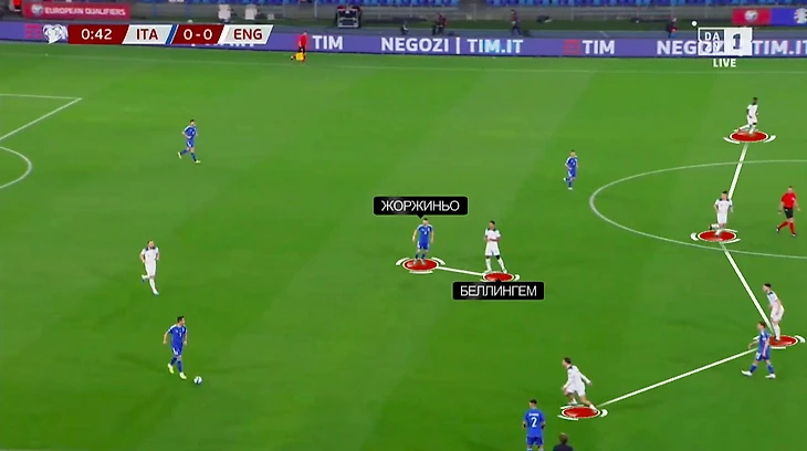 В сборной Гарета Саутгейта такого специалиста до сих пор не было, но, возможно, тренер уже его готовит. Против Италии и Украины персональное задание давали Беллингему. В обоих случаях Джуд играл строго по реджисте соперника. В первом сдерживал Жоржиньо, во втором – важнейшего для розыгрышей Украины Степаненко.