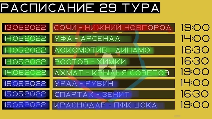 00:00 Расписание 29 тура РПЛ