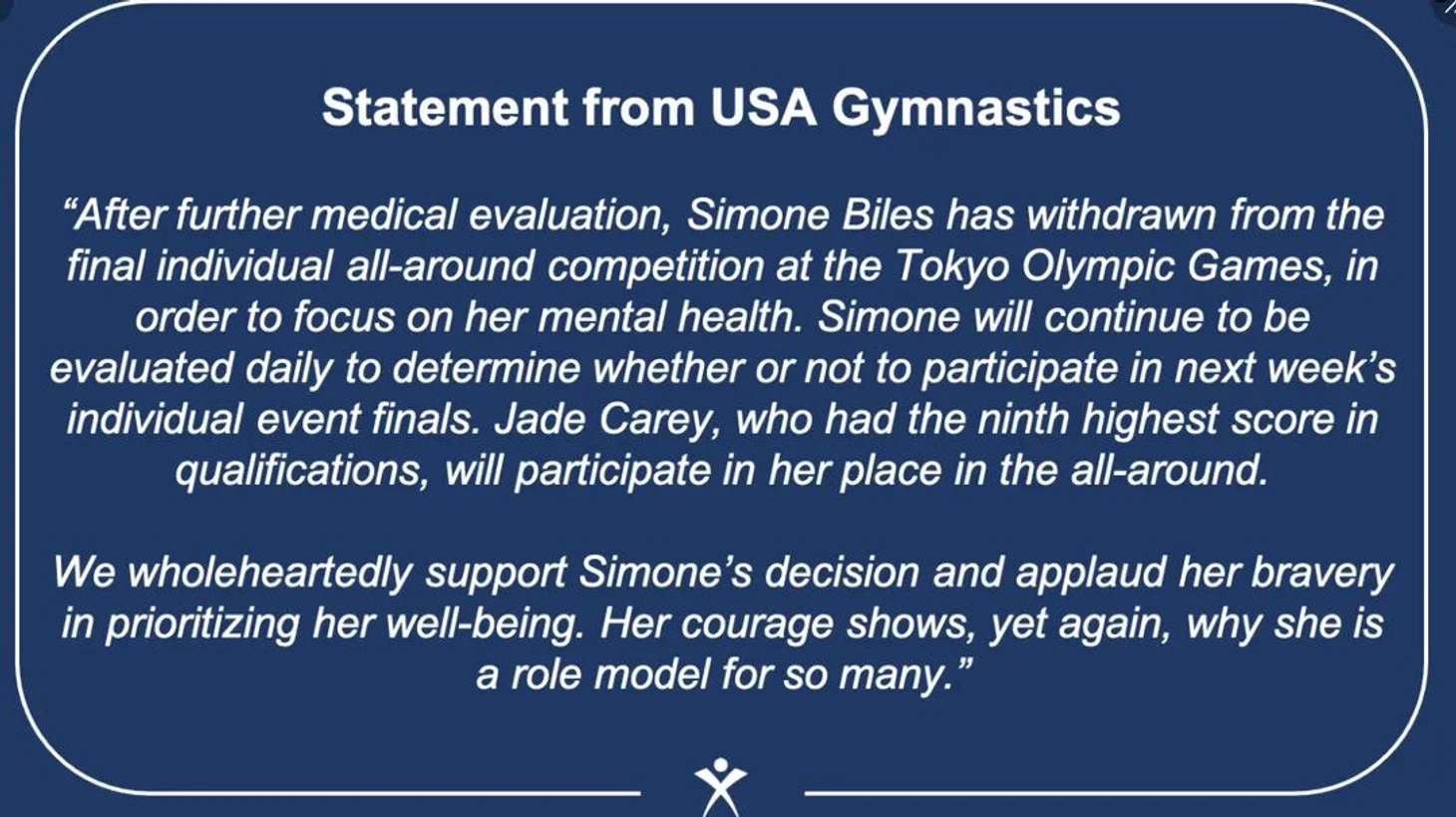 Байлз. Я хочу, чтобы вы меня правильно поняли. Байлз- уникальная спортсменка. Она опередила своё время на годы. К ее уровню никто не близок. Когда она в форме, все, что остаётся соперницам, глотать пыль. Она исполнительница уникальных элементов, о которых до нее в женской гимнастике нельзя было помыслить. И все это о таланте и работе в зале. Все это не про характер. Все это не про ответственность и не про лидерство. Я специально написал о Нагорном в начале. Чтобы вы почувствовали контраст. На лидере всегда больше ответственности за результат. На нем всегда больше внимания. И он всегда получает больше стрел в случае поражения. Я отнёсся с пониманием, если бы Байлз упала по три раза на каждом снаряде. Победы и поражения-две стороны одной медали. Если бы она боролась до конца, за команду, за подруг по команде, за тренеров, врачей и так далее. За всех людей, кто пять лет шёл сюда, к этой арене, к этому дню вместе с ней. А она бросила команду посреди соревнований. Развернулась и ушла. Разрыв между Россией и США 3 балла. Это то, что Байлз могла компенсировать своими вольными, там зашла оценка 11,7. У неё неплохое бревно, где она также могла поднять оценку и принести своей команде золото. Могло не получится, но попробовать! Это цена золотой Олимпийской медали. У неё то она есть, ещё с Рио, а остальные? Если она чувствовала моральные проблемы, зачем выходить? Зачем ехать на Олимпиаду? Дай дорогу другим. Если ты уже здесь, ты лидер команды, иди до конца. То что сделала Байлз, это не про спорт, не про дух, не про силу. Тем смешнее смотреть на заявления Американской Федерации гимнастики, где они называют поступок Симоны смелым.