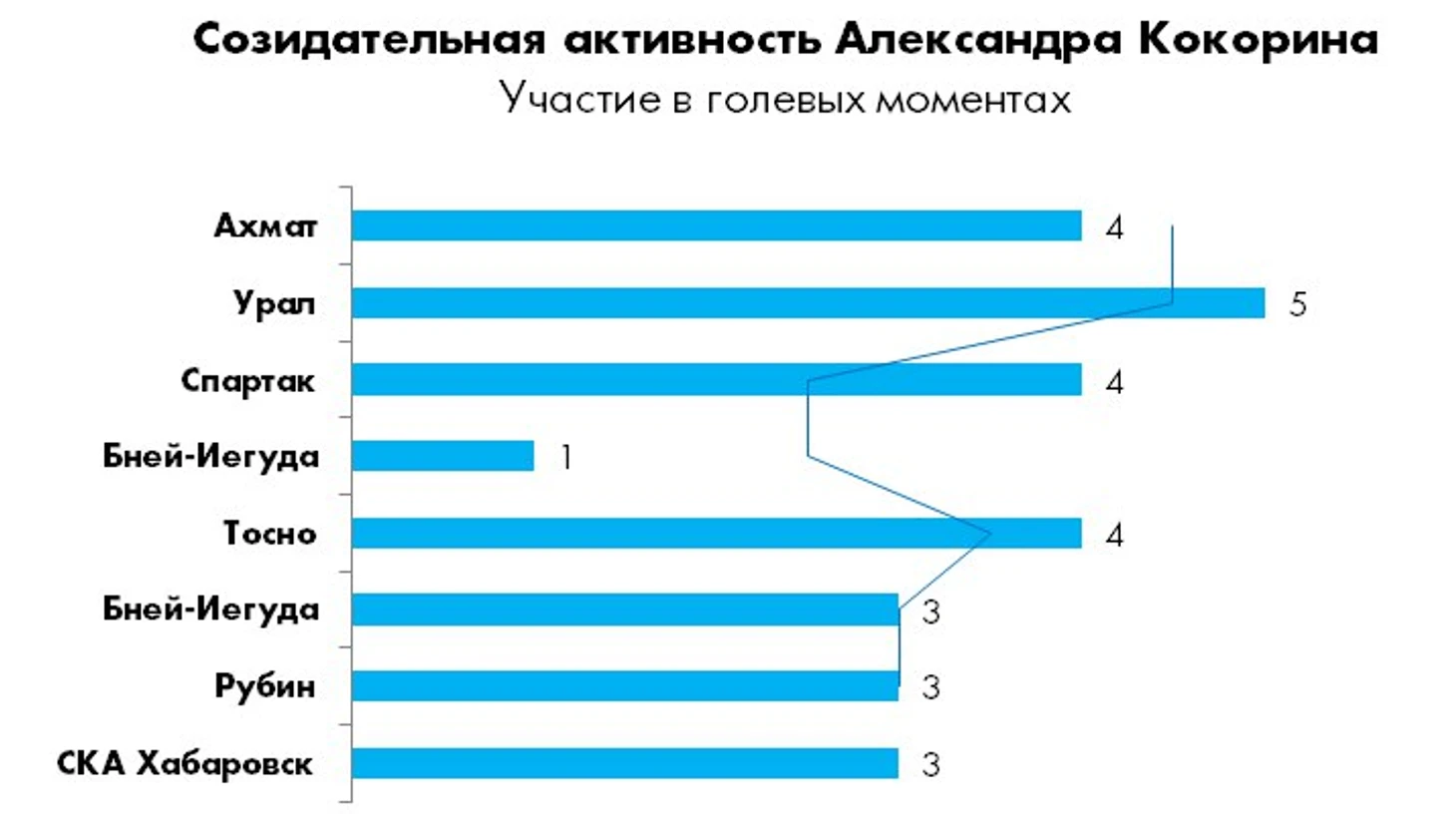 Александр Кокорин провёл очередной превосходный матч, отметившись в 4 из 6 эпизодах с голевыми моментами и заработав 2 балла за результативность.