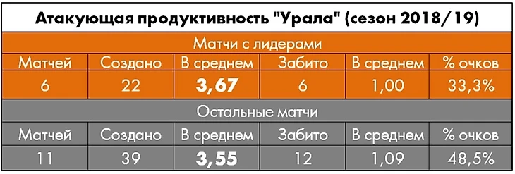 При Парфенове со стандартов «Урал» создает на треть больше голевых ситуаций, чем в прошлом сезоне при Тарханове (0,88 против 0,63 в среднем за игру), причем находит шансы даже в матчах против заведомо более габаритных соперников («Ростов», «Спартак», «Уфа»).