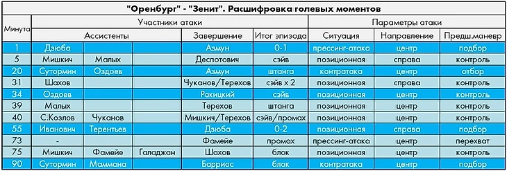 Можно припомнить и то, что 7 из 14 мячей в этих матчах «Оренбург» пропустил после стандартов (в трех случаях – с грубыми ошибками экс-кипера Фролова), зато позиционная оборона в низком блоке была выстроена почти образцово (лишь 5 пропущенных мячей в 8 играх).