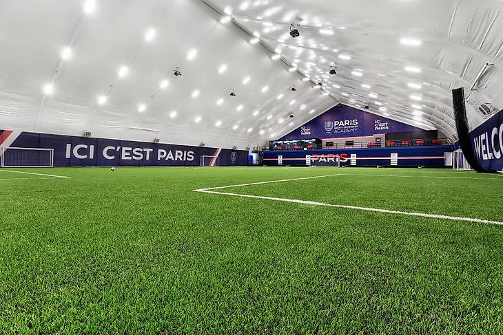Парижане построили манеж для Академии в значимом для французов месте – на территории «Лужников»: именно тут год назад сборная Франции взяла золото ЧМ-2018. Это первый манеж на территории России, созданный по проекту европейского клуба. Внутри – фулл-сайз поле, раздевалки, задизайненные под оригинальные с «Парк де Пренс», места для зрителей на втором ярусе.
