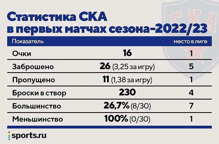 СКА на старте – машина: 8 побед подряд, мало пропущенных и крутые спецбригады