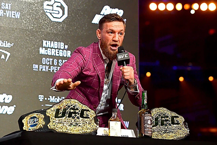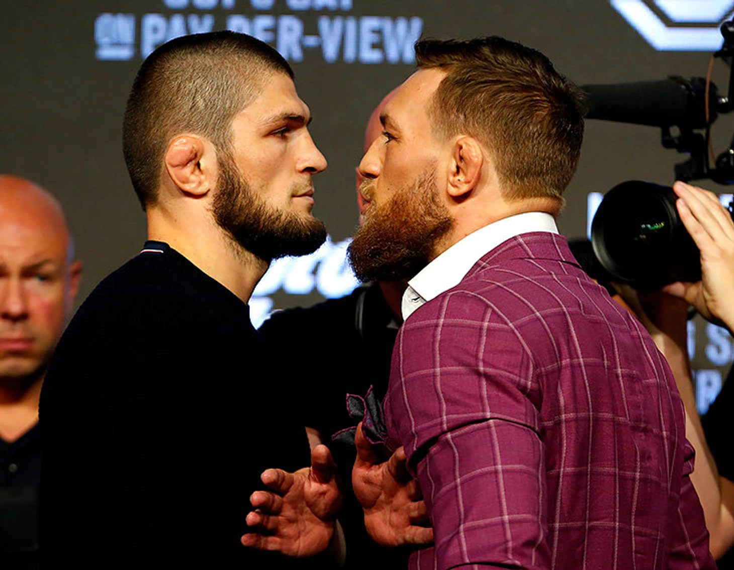 Они безгранично разные. Конор появился в зале с двумя чемпионскими поясами UFC (хотя на самом деле не владеет ни одним) и бутылкой своего виски Proper 12. Он не позволял журналистам закончить вопросы, перебивал Хабиба, вскакивал с места, напоминал историю с автобусом в Бруклине, постоянно рекламировал свой алкоголь (даже заявил, что лого напитка будет на канвасе во время боя с Нурмагомедовым) и дразнил своего соперника.