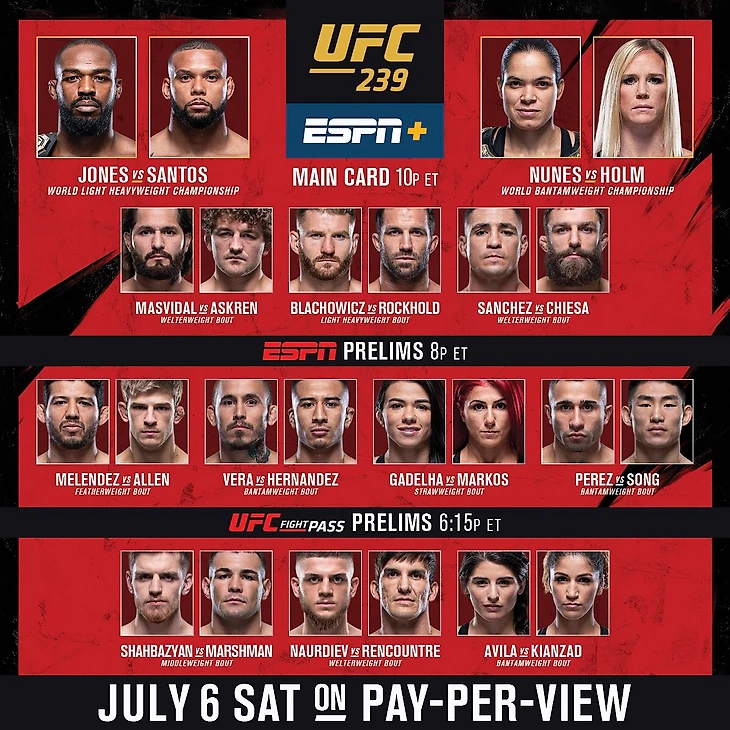 Неоспоримый Джонс, почти легендарная Нуньес и бешеный ветеран Санчес. UFC 239 – главный турнир лета