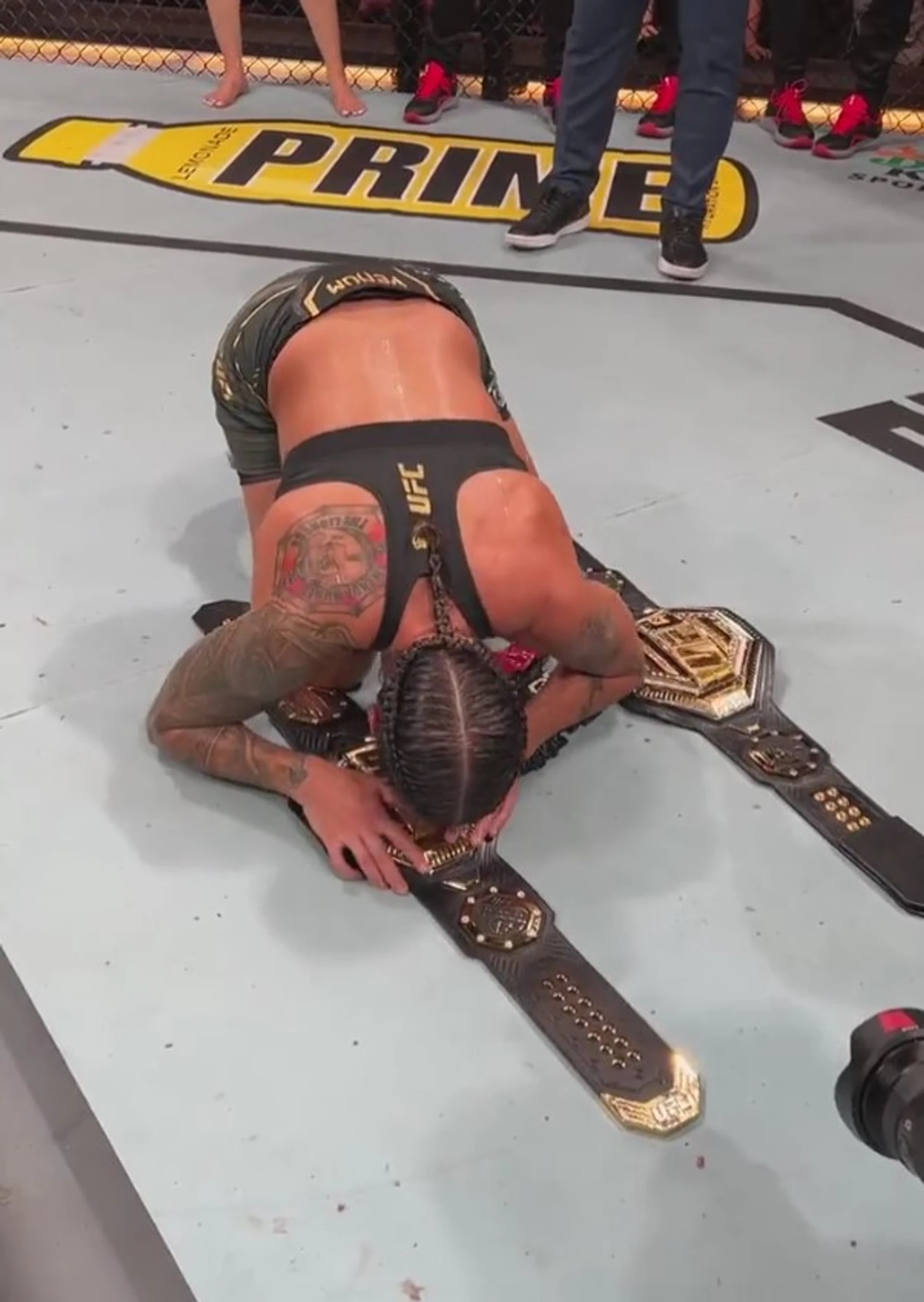 Побежал к друзьям на трибуну, а потом сказал в октагоне: «Я был чемпионом. Я чемпионом остаюсь. Просто пока без пояса». Ждем реванш с Махачевым?