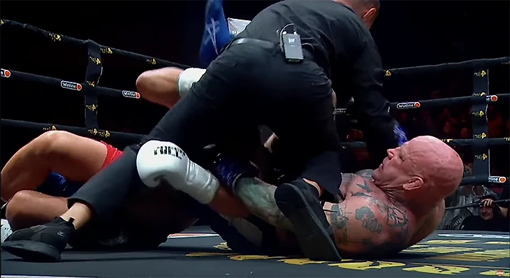 Тактаров вернулся на ринг спустя 15 лет: получил по затылку от Монсона, но провел болевой. Ветеранов разнимали команды