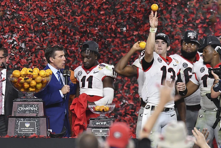 Смарт стал вторым бывшим помощником, которому удалось обыграть Сабана, оба поражения случились в этом сезоне. В середине нулевых Смарт был дэфенсив бэк Джорджии, а потом самым верным ассистентом Сабана, проработав с ним и в Майами Долфинс и в Алабаме (два титула). Вернувшись в свою альма матер в 2016 Кирби построил мощную команду, плацдармом стал мощный рекрутинг как в Джорджии, где исторически много талантов и мало конкурирующих университетов, так и собирая таланты по всей стране (тот же Бауэрс из Калифорнии, немало игроков Бульдогов из Флориды). Кирби побеждал Роуз, Пич, Оранж и Коттон боулах и выходил в финал плей-офф, победа в национальном чемпионате казалось вопросом времени, но с другой стороны чем дольше не побеждаешь, тем больше сомнений, в том числе и из-за упрямости Кирби - его приверженности мощной обороне и спорным решениям по квотербекам. Ещё несколько лет без побед и голоса сторонников нарратива "Кирби не может победить в больших играх и никогда не обыграет Алабаму" звучали бы ещё громче и уверенней. Вместо них в ночь 10 января в Индианаполисе громче всех звучали болельщики Джорджии -- КИРБИ! КИРБИ! Конфетти сыпалось, а тренер победителей повторил знаменитое: Сегодня что-то будет разгромлено в Индианаполисе, детка! Такими словами встречали прошлое чемпионство Бульдогов.