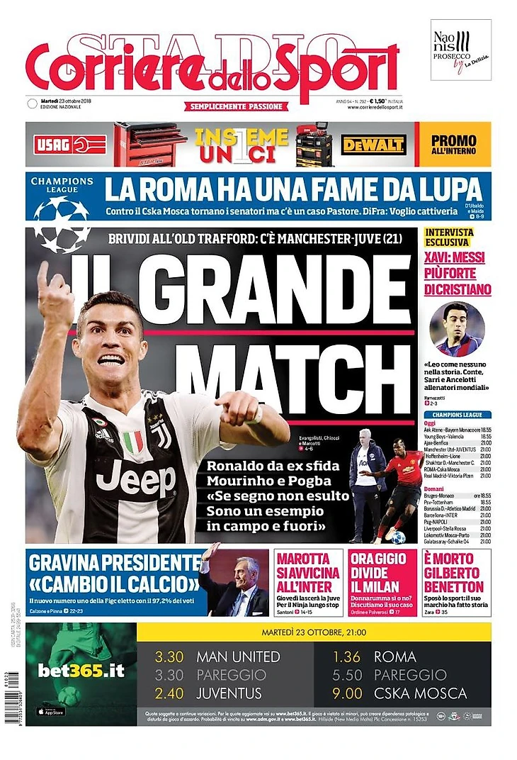 Большой матч. Заголовки Gazzetta, TuttoSport и Corriere за 23 октября