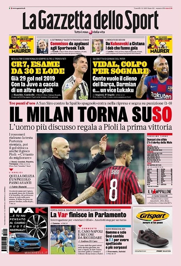 Три золотых очка. На «Сан Сиро» против «СПАЛ» испанец вышел после перерыва и забил со штрафного (1:0). Самый обсуждаемый человек подарил первую победу Пиоли. Россонери подняли голову. Медленный старт, затем гол раскрыл и игру. Пиоли: «Есть много чего для улучшения».