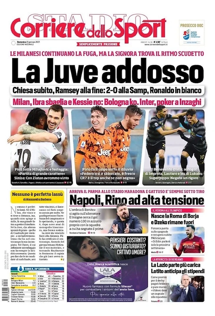 Победы от «Милана», «Интера» и «Ювентуса», а также сегодняшние матчи «Наполи», «Ромы» и «Лацио» с «Аталантой» – в утреннем обзоре заголовков итальянских спортивных изданий в блоге «В гостях у Кальчо».