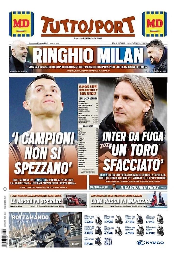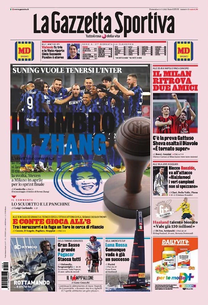 Печать Чжэна. Заголовки Gazzetta, TuttoSport и Corriere за 14 марта