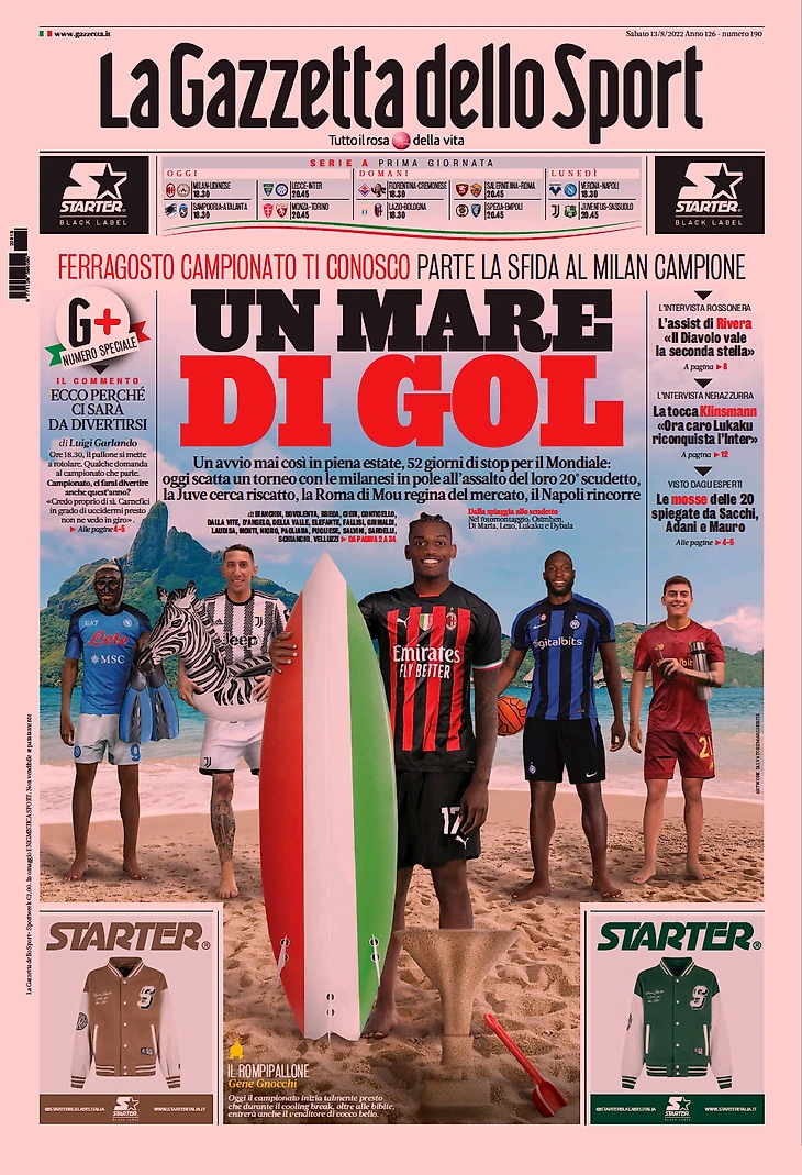 Феррагосто узнаёт чемпионат. Начинается схватка с «Миланом»-чемпионом. Начало никогда не было в разгар лета. 52 дня до остановки на Мундиаль: сегодня начинается турнир с миланцами в качестве фаворитов в борьбе за их 20-е Скудетто. «Юве» ищет искупления, «Рома» Моура – королева на рынке, «Наполи» преследует.