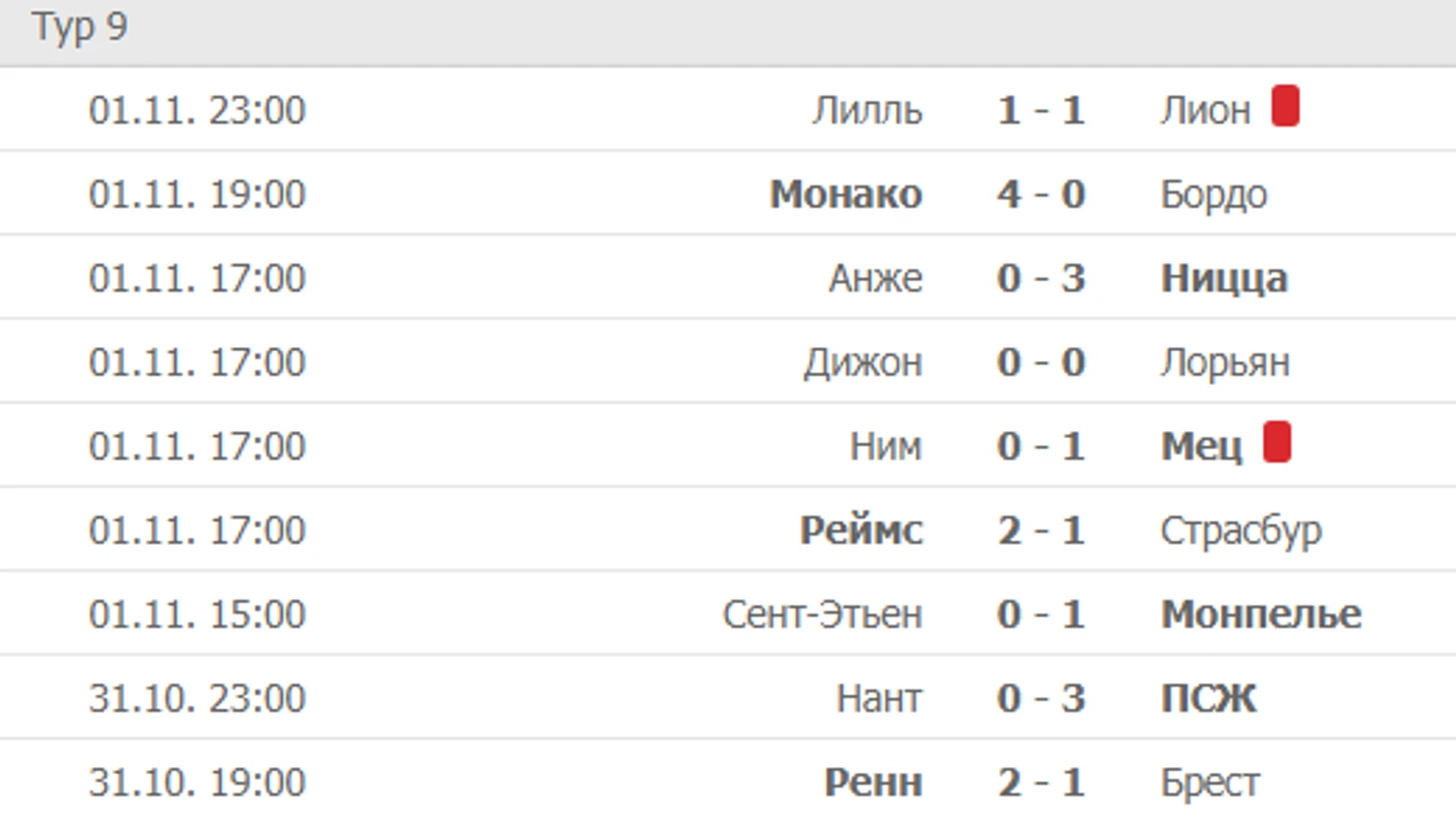 Чемпионат Франции. Лига 1. 9-й тур. Факторы разголья