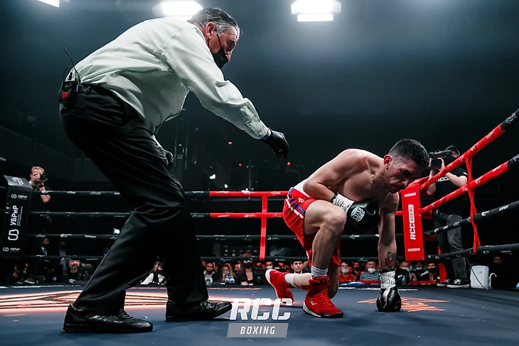 В шестой паре вечера турнира RCC Boxing Promotions Мухаммад Якубов защищал свой титул чемпиона WBC International в категории до 59 кг против Кристиана Пальмы (Лаутаро, Чили, 31-10-1).
