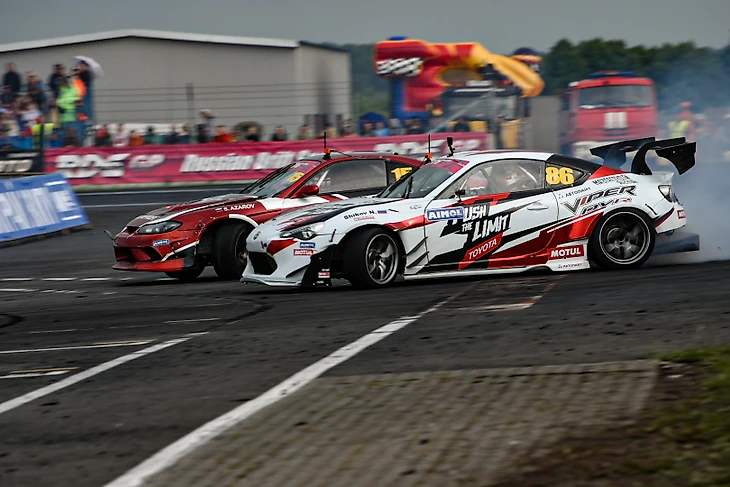 И наконец лидеры квалификации. На третьем месте расположился Дайго Сайто из команды Aimol Racing Russia на своей Toyota Altezza с мощным мотором v8 Dodge, построенным по спецификациям Nascar. Титулованный дрифтер из Японии проехал очень широко и быстро, собрав все клиппинг зоны, и набрал 93 балла.Вторым стал Дамир Идиятулин из команды Fresh Auto. Красноярец традиционно силён на трассе АСК Атрон и вполне очевидны его амбиции на победу после подиума на 1 этапе Российской Дрифт Серии. Точные по судейскому заданию зрелищные заезды и высокая итоговая оценка - 94 балла.