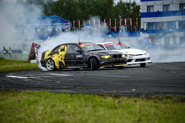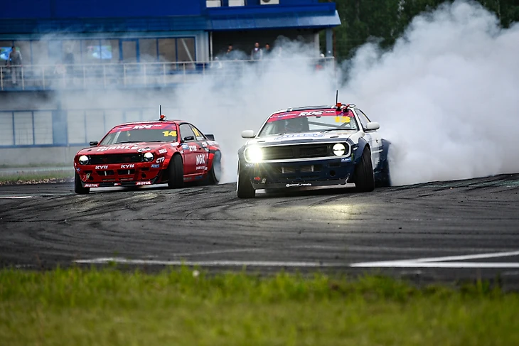 Илья Фёдоров и Владимир Чивчян устроили локальное дерби на 2-х похожих автомобилях, построенных в стенах Форвард Авто - Nissan Silvia S14 в обвесе Rocketboss. Как сказал после парных боевых заездов с Ильёй, Владимир Чивчян: