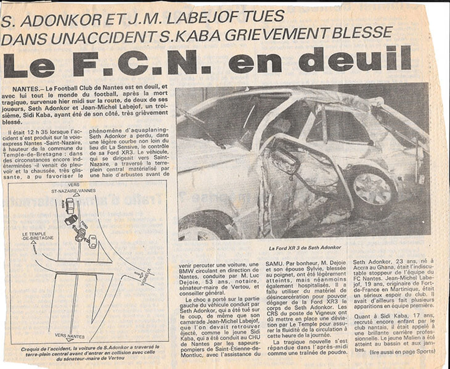 Ехавший навстречу водитель BMW ничего не успел сделать. Ford смяло, а Адонкор и Лабежоф погибли на месте. В живых остался только Сиди Каба. Он попал в больницу с тяжелыми травмами.