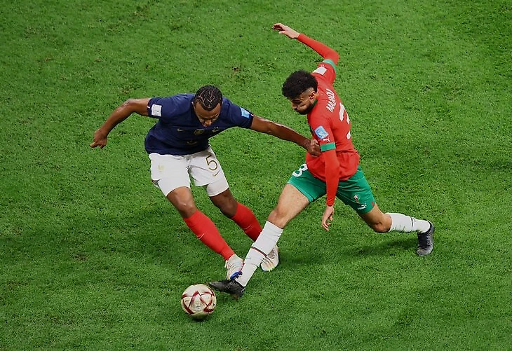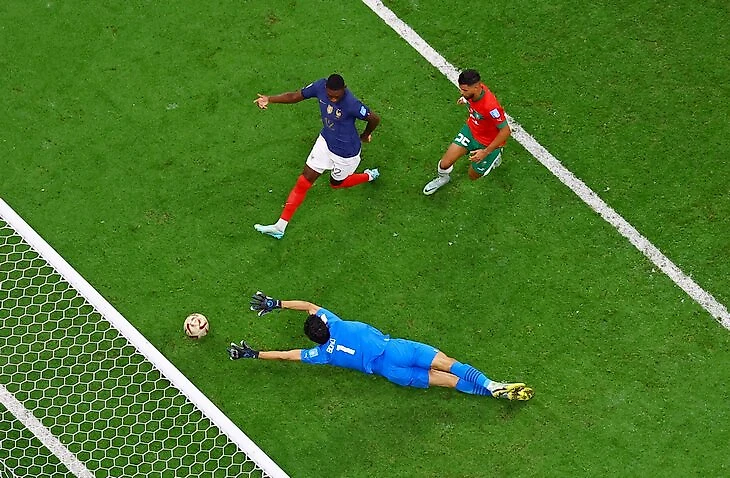 Марокко с самого начала давило Францию. Команда Валида Реграги больше владела мячом, жестко прессинговала и чуть не забила в конце первого тайма после классной бисиклеты Эль-Ямика. Футболисты сборной Франции тоже отметили после игры резвый напор марокканцев.